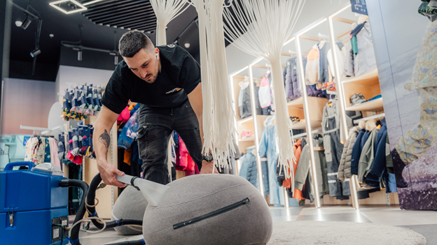 В остальном это привычная для нас плановая химчистка магазина одежды: посадочные места, зоны ожидания, элементы интерьера, с которыми чаще всего контактируют клиенты. Работы прошли спокойно, без спешки, но в чётких временных рамках — к утру магазин был полностью готов к открытию.