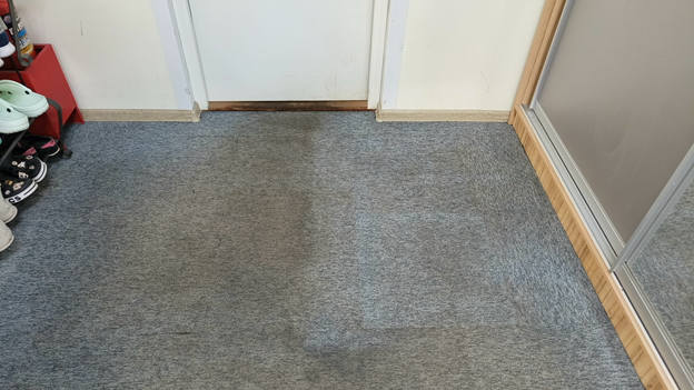 Результат получился очень наглядный. Ковролин преобразился до неузнаваемости: ушла въевшаяся грязь, цвет стал ровнее, покрытие снова стало выглядеть аккуратно и ухоженно, а не как «вечная прихожая после зимы».