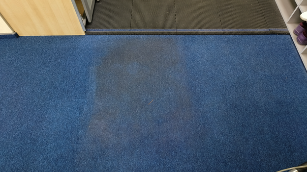 протоптанные дорожки в проходах, потемнения у рабочих мест, следы кофе, пыль и всё то, что накапливается незаметно изо дня в день. Вроде бы «ничего критичного», но в целом ковролин уже выглядел уставшим.